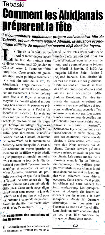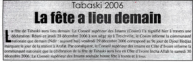 Tabaski 2006 : la fête a lieu demain