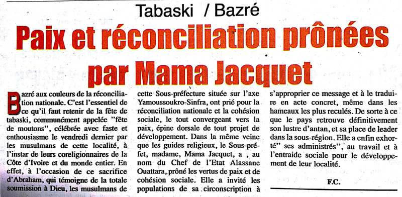 Tabaski / Bazré : paix et réconciliation prônées par Mama Jacquet