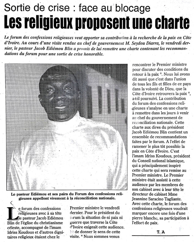 Sortie de crise : face au blocage les religieux proposent une charte