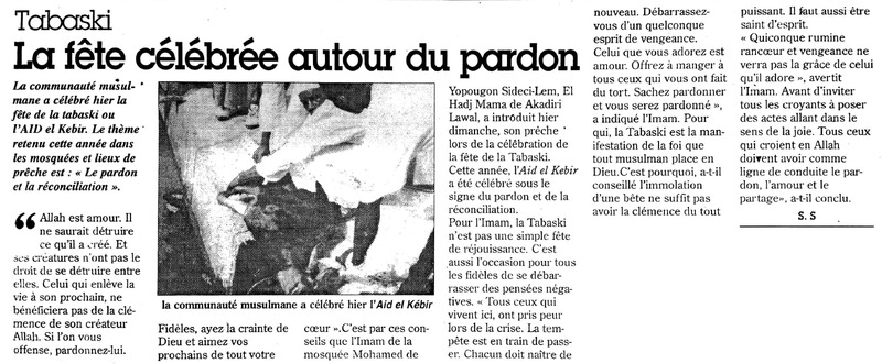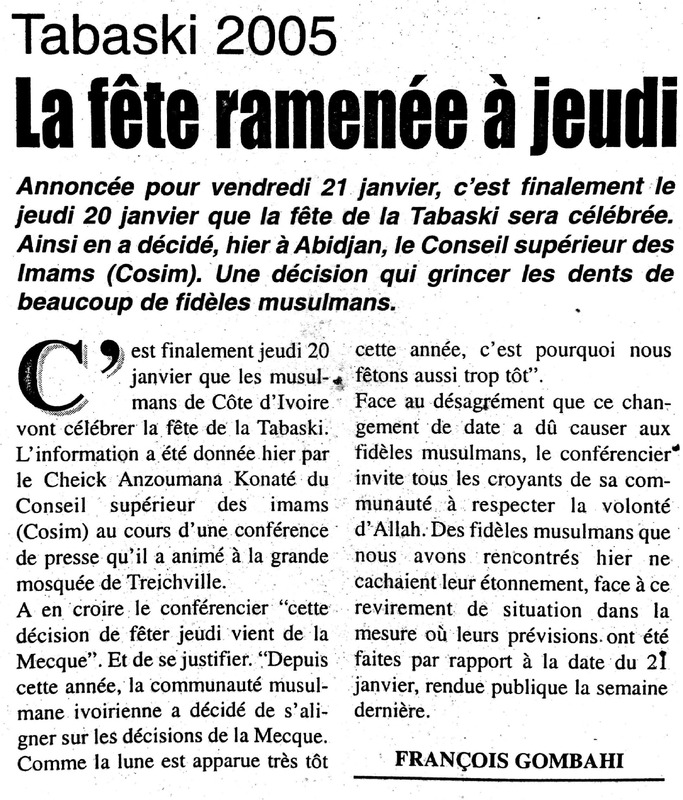 Tabaski 2005 : la fête ramenée à jeudi