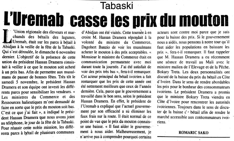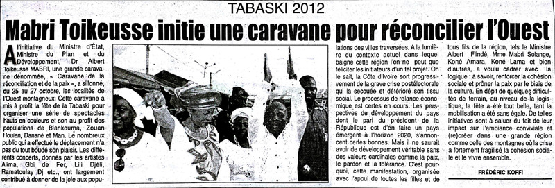 Tabaski 2012 : Mabri Toikeusse initie une caravane pour réconcilier l'Ouest