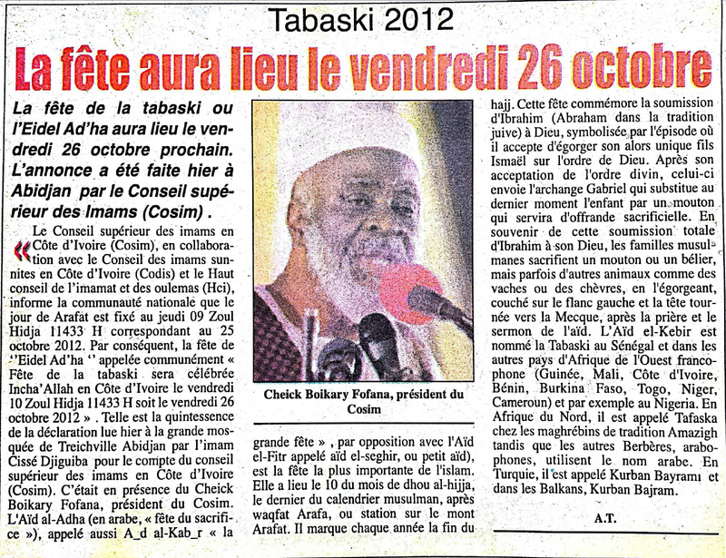 Tabaski 2012 : la fête aura lieu le vendredi 26 octobre