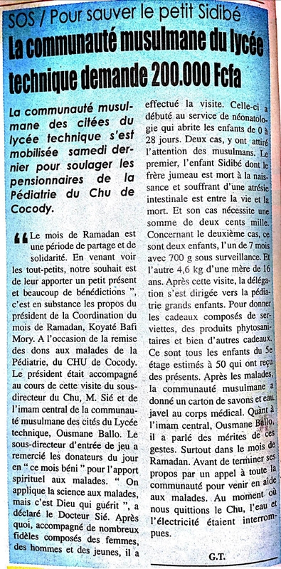 SOS/Pour sauver le petit Sidibé : la communauté musulmane du lycée technique demande 200.000 Fcfa