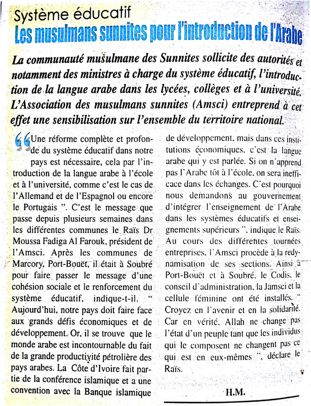 Système éducatif : les musulmans sunnites pour l'introudction de l'Arabe
