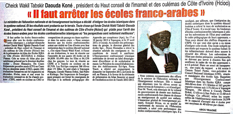 Cheick Wakil Tabskir Daouda Koné, président du Haut conseil de l'imamat et des oulémas de Côte d'Ivoire (Hcioci) : "Il faut arrêter les écoles franco-arabes"