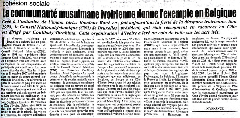Cohésion sociale : la communauté musulmane ivoirienne donne l'exemple en Belgique