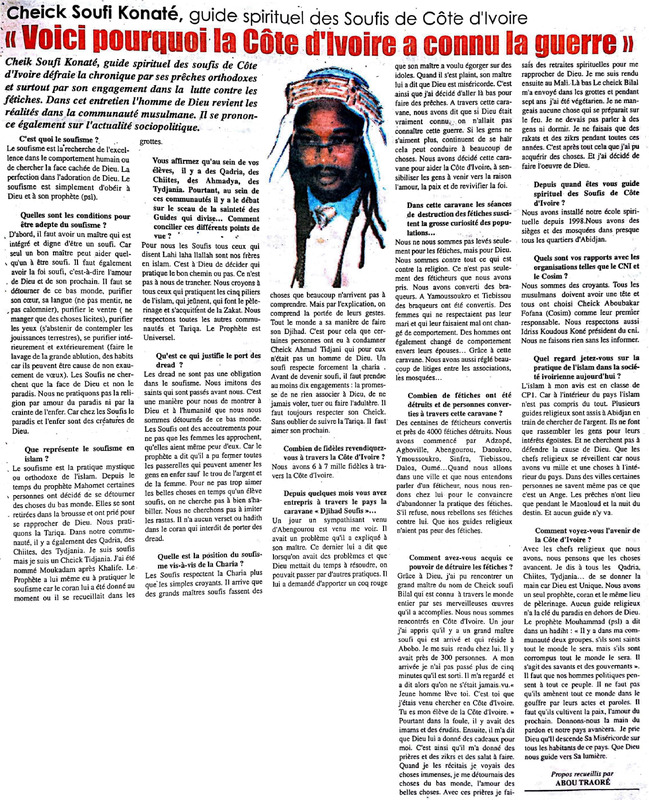 Cheick Soufi Konaté, guide spirituel des Soufis de Côte d'Ivoire : "Voici pourquoi la Côte d'Ivoire a connu la guerre"