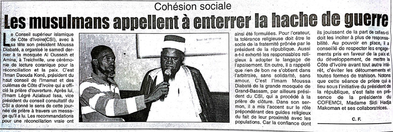 Cohésion sociale : les musulmans appellent à enterrer la hache de guerre