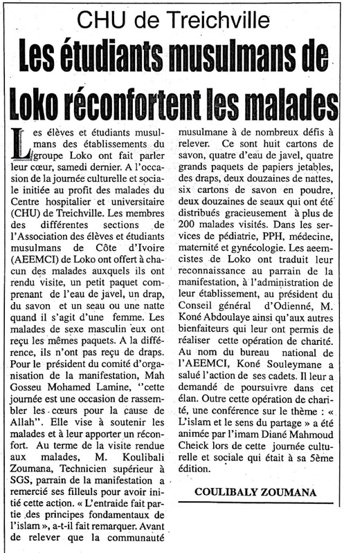 CHU de Treichville : les étudiants musulmans de Loko réconfortent les malades