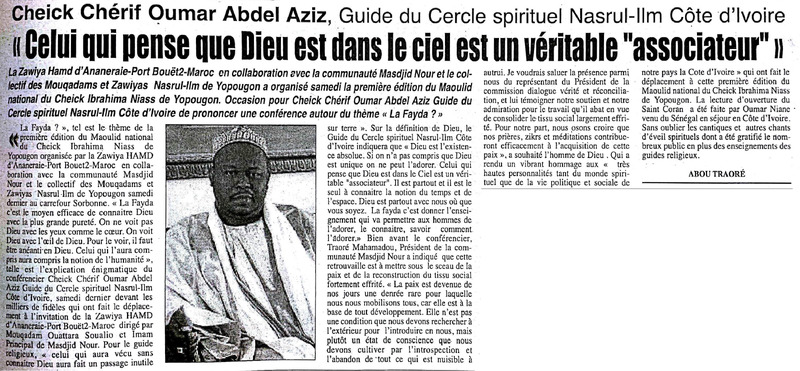 Cheick Chérif Oumar Abdel Aziz, Guide du Cercel spirituel Nasrul-Ilm Côte d'Ivoire : "Celui qui pense que Dieu est dans le ciel est un véritable "associateur""