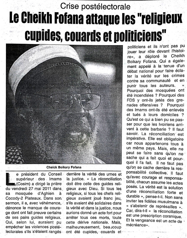 Crise postélectorale : le Cheikh Fofana attaques le "religieux cupides, couards et politiciens"