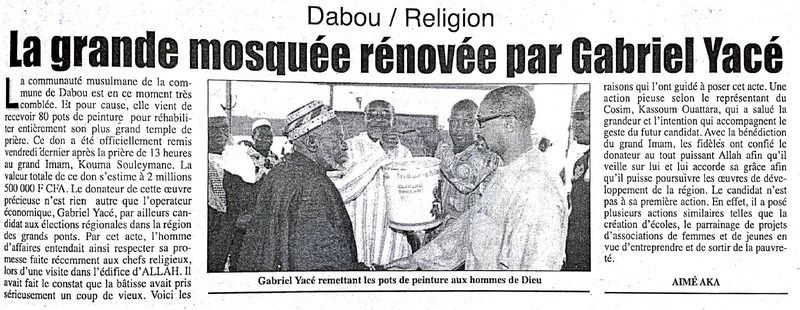 Dabou / Religion : la grande mosquée rénovée par Gabriel Yacé