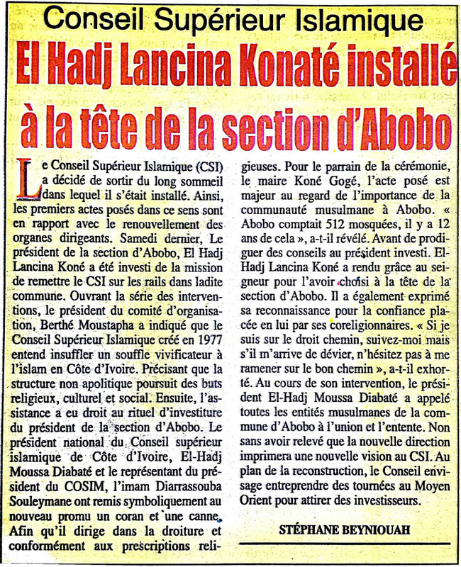 Conseil Supérieur Islamique : El Hadj Lancina Konaté installé à la tête de la section d'Abobo