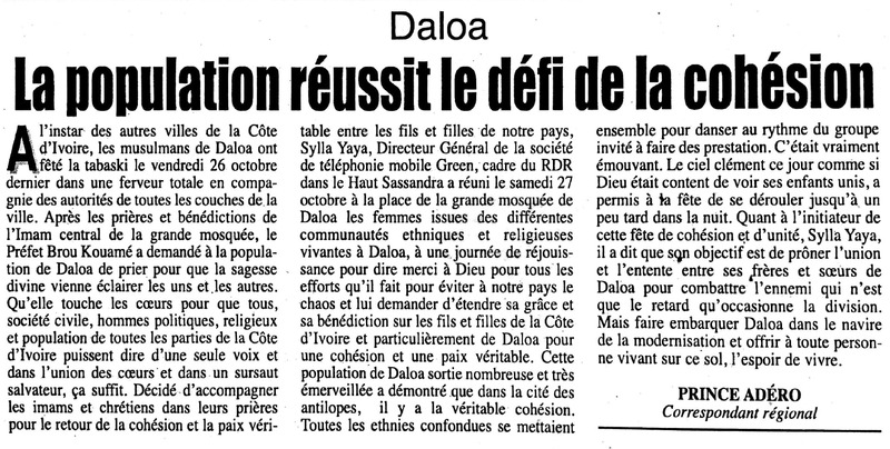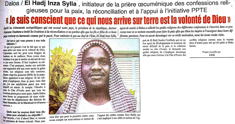 Daloa. El Hadj Inza Sylla, initiateur de la prière oecuménique des confessions religieuses pour la paix, la réconciliation et à l'appui à l'initiative PPTE : "Je suis conscient que ce qui nous arrive sur terre est la volonté de Dieu"