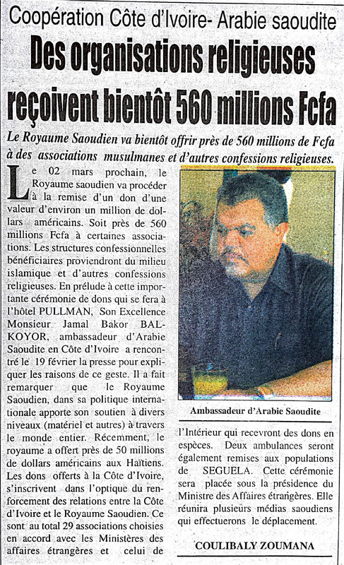 Coopération Côte d'Ivoire-Arabie Saoudite : des organisations religieuses reçoivent bientôt 560 millions Fcfa