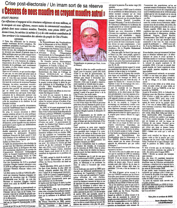 Crise post-électorale / Un imam sort de sa réserve : "Cessons de nous maudire en croyant maudire autrui"