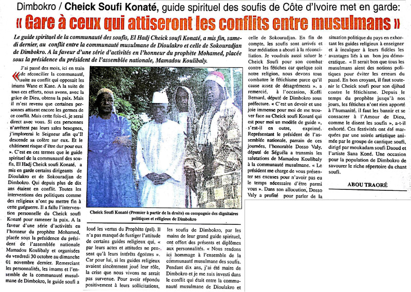 Dimbokro / Cheick Soufi Konaté, guide spirituel des soufis de Côte d'Ivoire met en garde : "Gare à ceux qui attiseront les conflits entre musulmans"