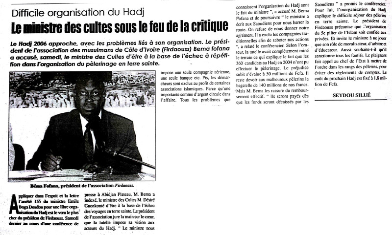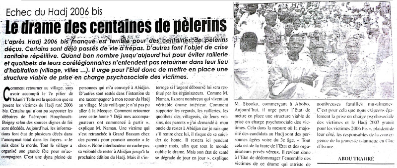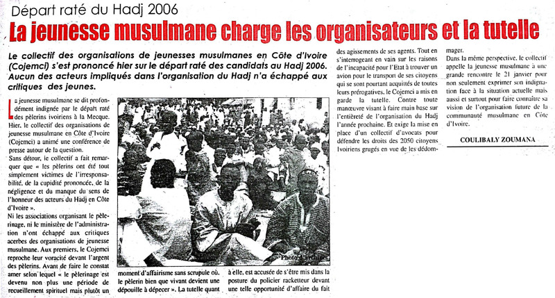 Départ raté du Hadj 2006 : la jeunesse musulmane charge les organisateurs et la tutelle