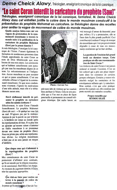 Deme Cheick Alawy, Théologien, enseignant coranique de la loi coranique : "Le saint Coran interdit la caricature du prophète (Saw)"