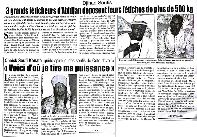 Djihad Soufis : 3 grands féticheurs d'Abidjan déposent leurs fétiches de plus de 500kg