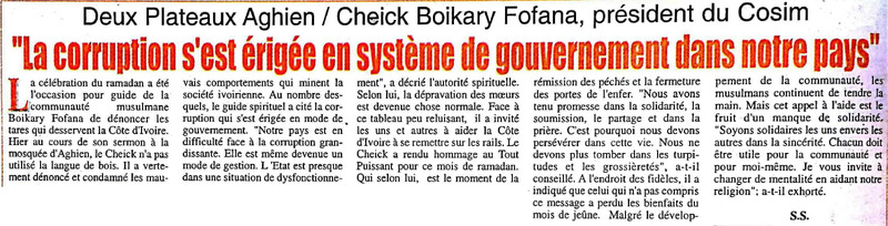 Deux Plateaux Aghien / Cheick Boikary Fofana, président du Cosim : "La corruption s'est érigée en système de gouvernement dans notre pays"