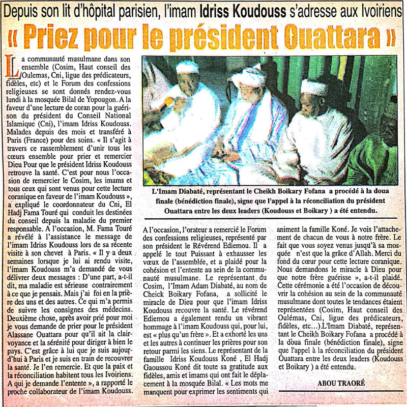Depuis son lit d'hôpital parisien, l'imam Idriss Koudouss s'adresse aux Ivoiriens : "Priez pour le président Ouattara"