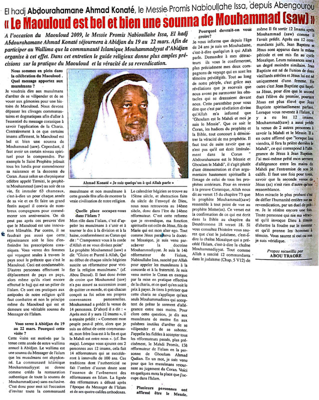 El hadj Abdourahamane Ahmad Konaté, le Messie Promis Nabioullahe Issa, depuis Abengourou : "Le Maouloud est bel et bien une sounna de Mouhammad (saw)"