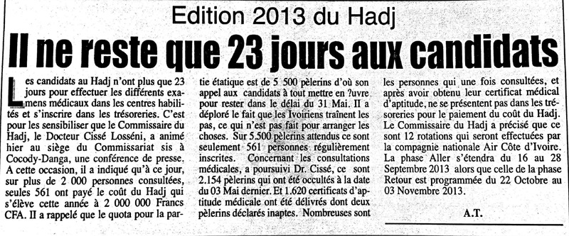 Édition 2013 du Hadj : il ne reste que 23 jours aux candidats