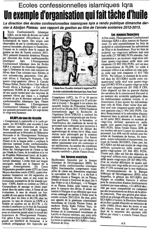 Écoles confessionnelles islamiques Iqra : un exemple d'organisation qui fait tache d'huile