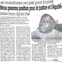 Les musulmans ont prié pour la paix : "Nous prenons position pour la justice et l'équité" déclare l'imam Djiguiba Cissé