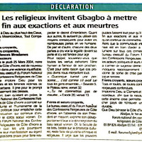 Déclaration : les religieux invitent Gbagbo à mettre fin aux exactions et aux meurtres