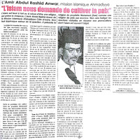 L'Amir Abdul Rashid Anwar, mission islamique Ahmadiyya : "L'islam nous demande de cultiver la paix"